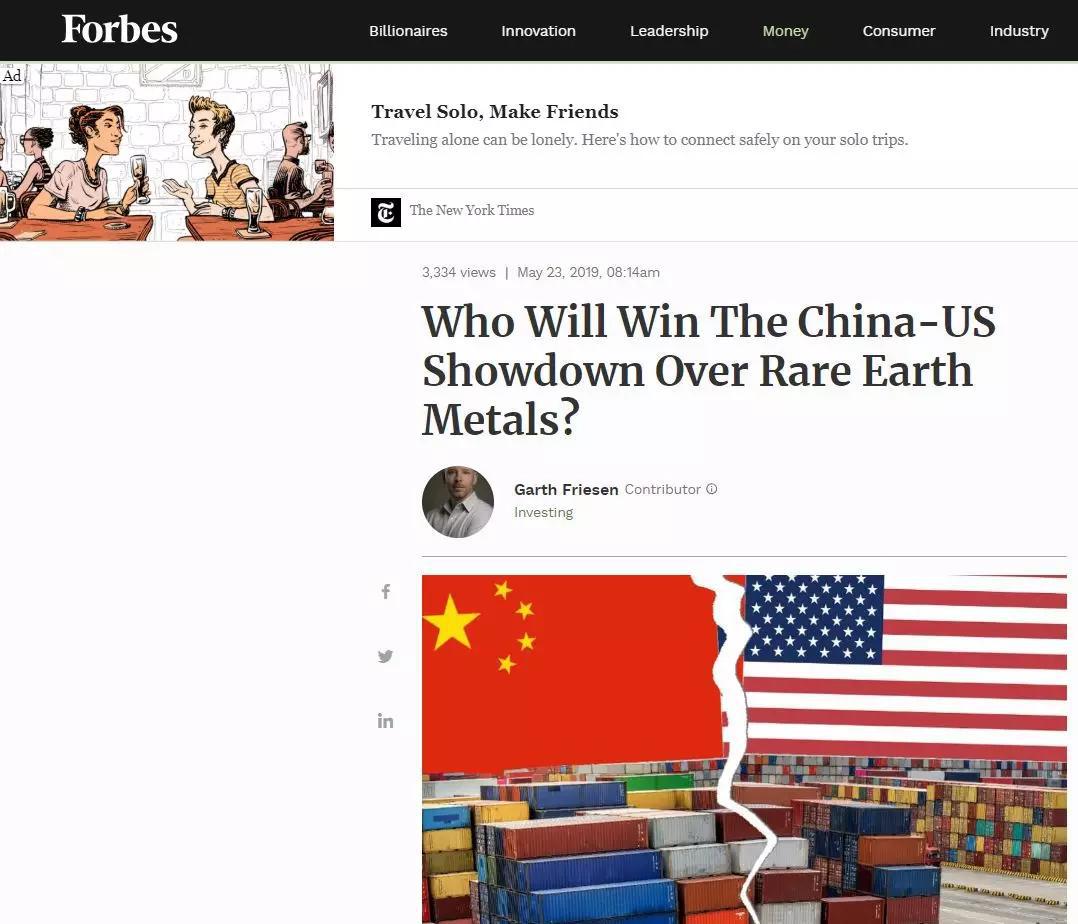 《福布斯》也比較“樂觀”。在題為《中美稀土攤牌誰會(huì)贏》的文章中,作者并沒有提及中國(guó)在稀土制造中技術(shù)領(lǐng)先于美國(guó),而是把美國(guó)稀土產(chǎn)業(yè)落后,歸因于美國(guó)“不愿意”做。