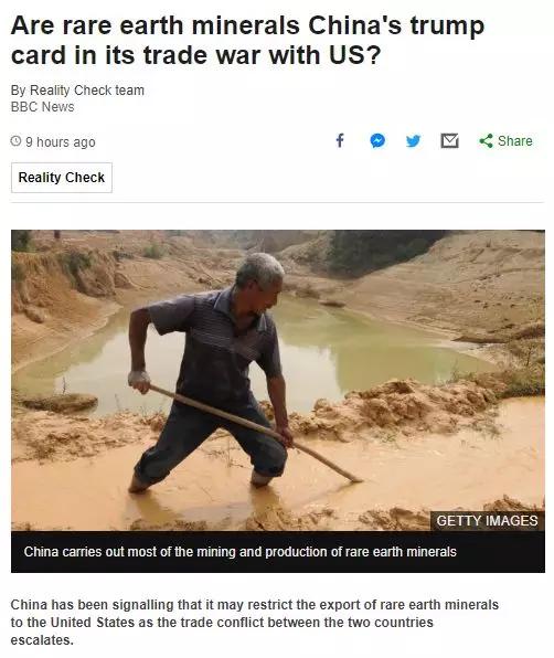 BBC上面這篇文章的標(biāo)題很有趣,一語雙關(guān):《稀土是中國(guó)與美國(guó)貿(mào)易戰(zhàn)的“王牌”嗎》。(英文中trump原意就是“王牌”)