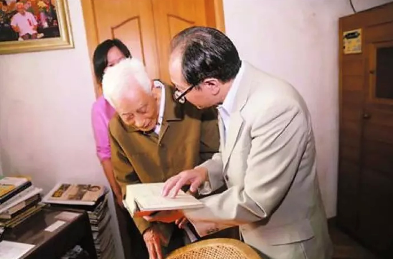 郝運(中)和專門赴其家中為他頒發(fā)“翻譯文化終身成就獎”的王剛毅(右)。照片攝于2015年。
